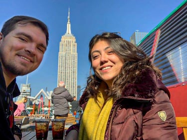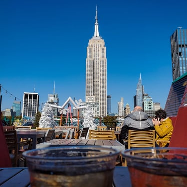 Why? Because going to a rooftop in NYC is an experience — and this one is one of our favorites. You get the Empire State Building right in front of you, plus almost a 360° view depending on where you sit or walk. They decorate for Christmas, and the heated igloos are super cute. If you drink, the prices aren’t as crazy as other rooftops, and if you don’t, they offer hot cocoa, sodas, and more.