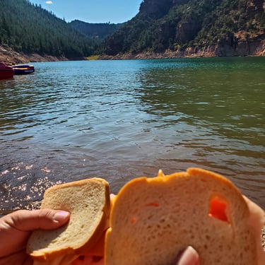 We arrived at our campsite, found the perfect spot, and immediately set up camp. Wanting to add a little extra adventure to the weekend, we brought our kayak — and we can’t recommend this enough, especially for couples. Kayaking allows you to explore small islands, tuck into hidden corners of the reservoir, and even find perfect little picnic spots that feel completely your own.