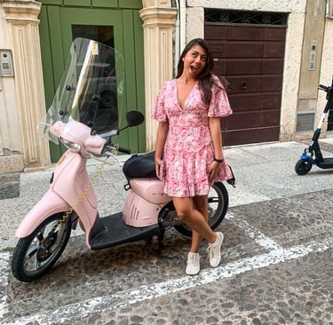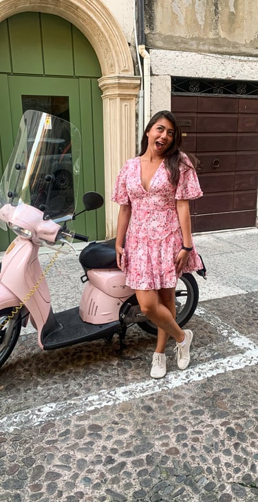 There was a calmness to our walk, finding a pink Vespa that matched a pink dress, brushing against hanging plants, and feeling the cobblestone streets beneath our feet. As we wandered the narrow streets, the buildings towered over us, leaving us without a sense of direction—just as we liked.